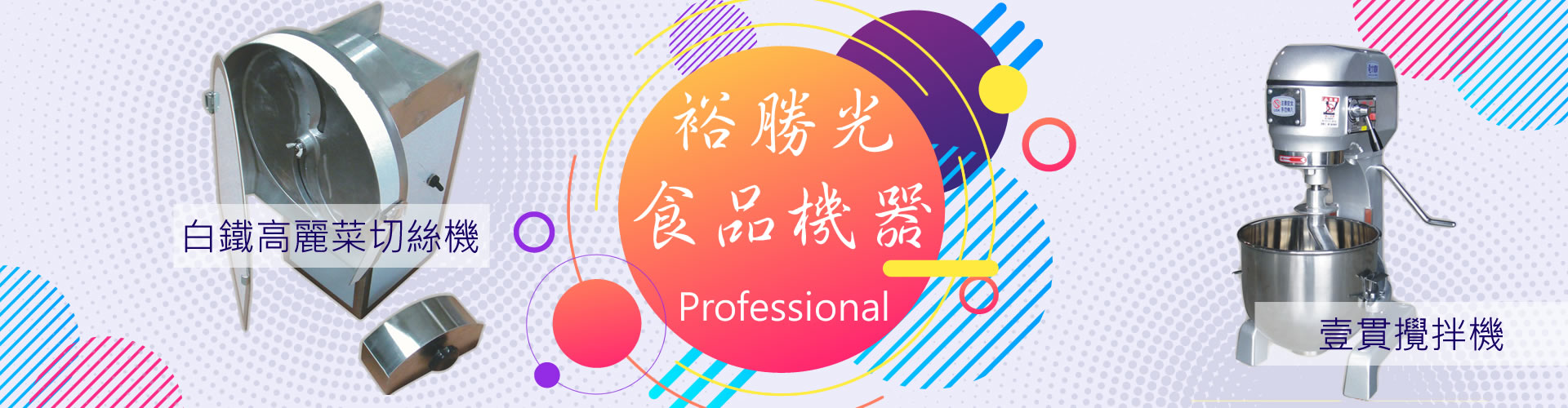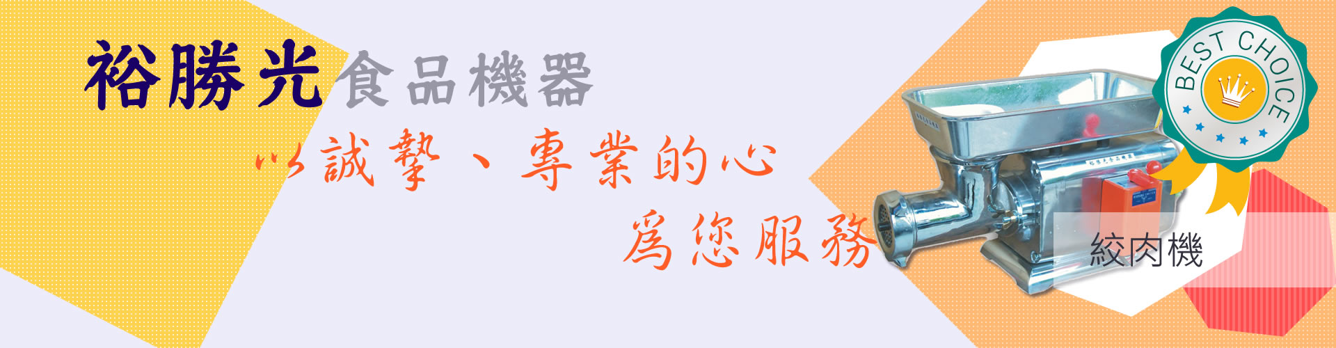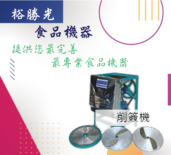 裕勝光食品機器,迄今已成立四十餘年,專業經營於各類食品機器的銷售與維修。我們堅信唯有提供優良品質的產品及專業熱忱的服務態度,才能取得您的信賴讓客戶信賴也是裕勝光永續經營的最高原則。本公司內備有最齊全的食品機械及維修零件倉儲,歡迎您親臨至現場參觀選購,維修方面...