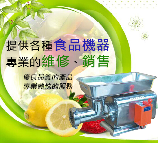 專業維修:食品乾燥機、食品粉碎機、商用碎冰機、米苔目機、削簽機、紅蔥切片機、絞肉機、蔥油餅壓皮機、攪拌機、打蛋機、柳丁機、洗米機、切菜機、大小烤箱、石磨機、六角桶混合機、薑絲機、日本切絲機、中藥乾燥機...等各類食品機器;電話: (04) 2382-5088、(04) 2380-7119、(04) 2389-8939.